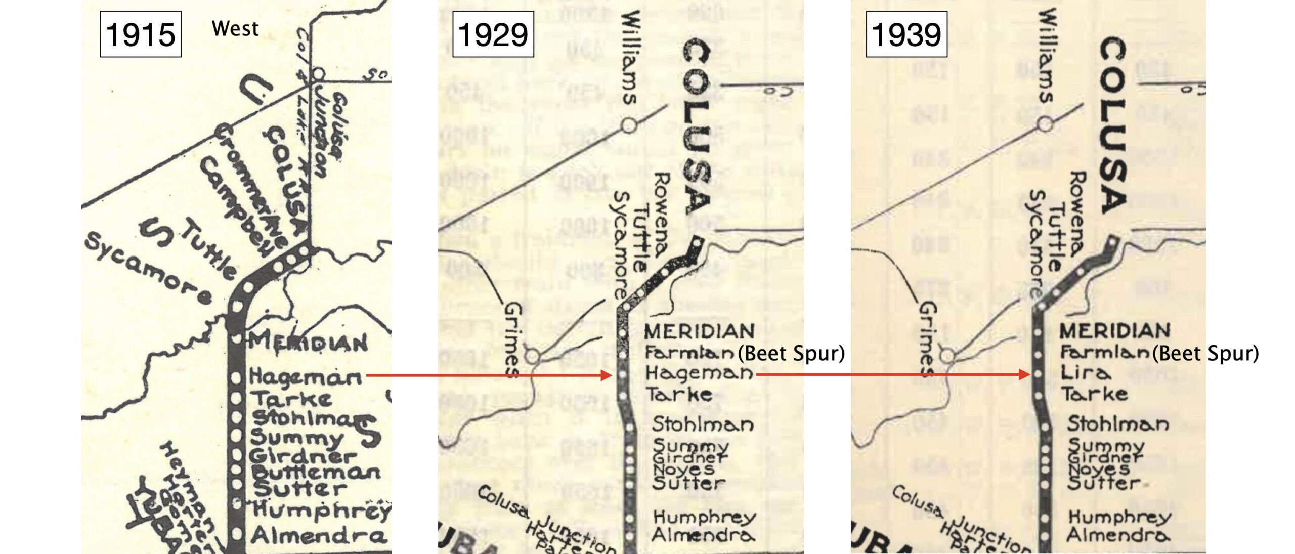 Just a reminder that the 1914 employee timetable only shows two spurs between Meridian and Colusa. Maybe Sycamore or Tuttle changed drastically between this date and 1937, but there is no way to prove it right now.