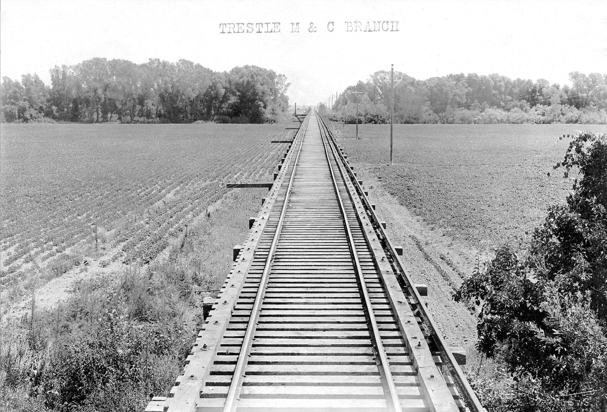 The wooden trestle had two steel-reinforced overpasses inserted over the two waterways of Butte Slough. NE 129, east view, ca. 1913.