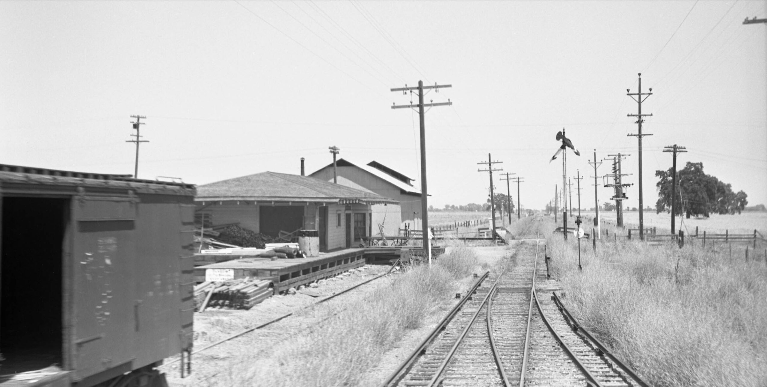 The first possible stop on the branch line is Almendra, the train passing by at full speed in this east view from the parlor car Sacramento on June 16. 1940.