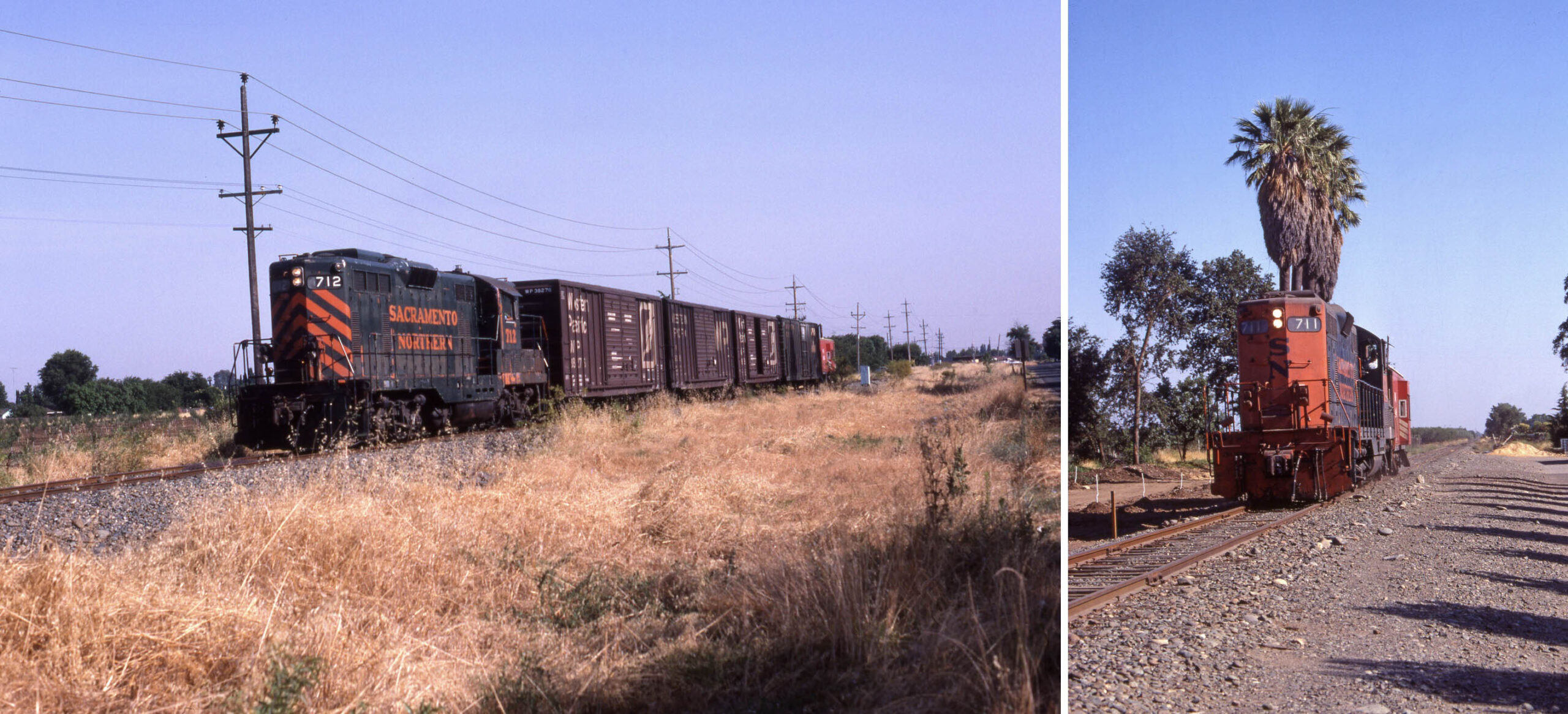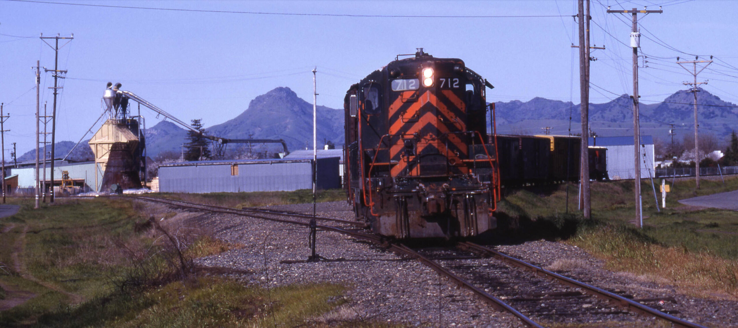 This west view ca. 1976 of SN 712 and the Chico Local fails to show the shelter.