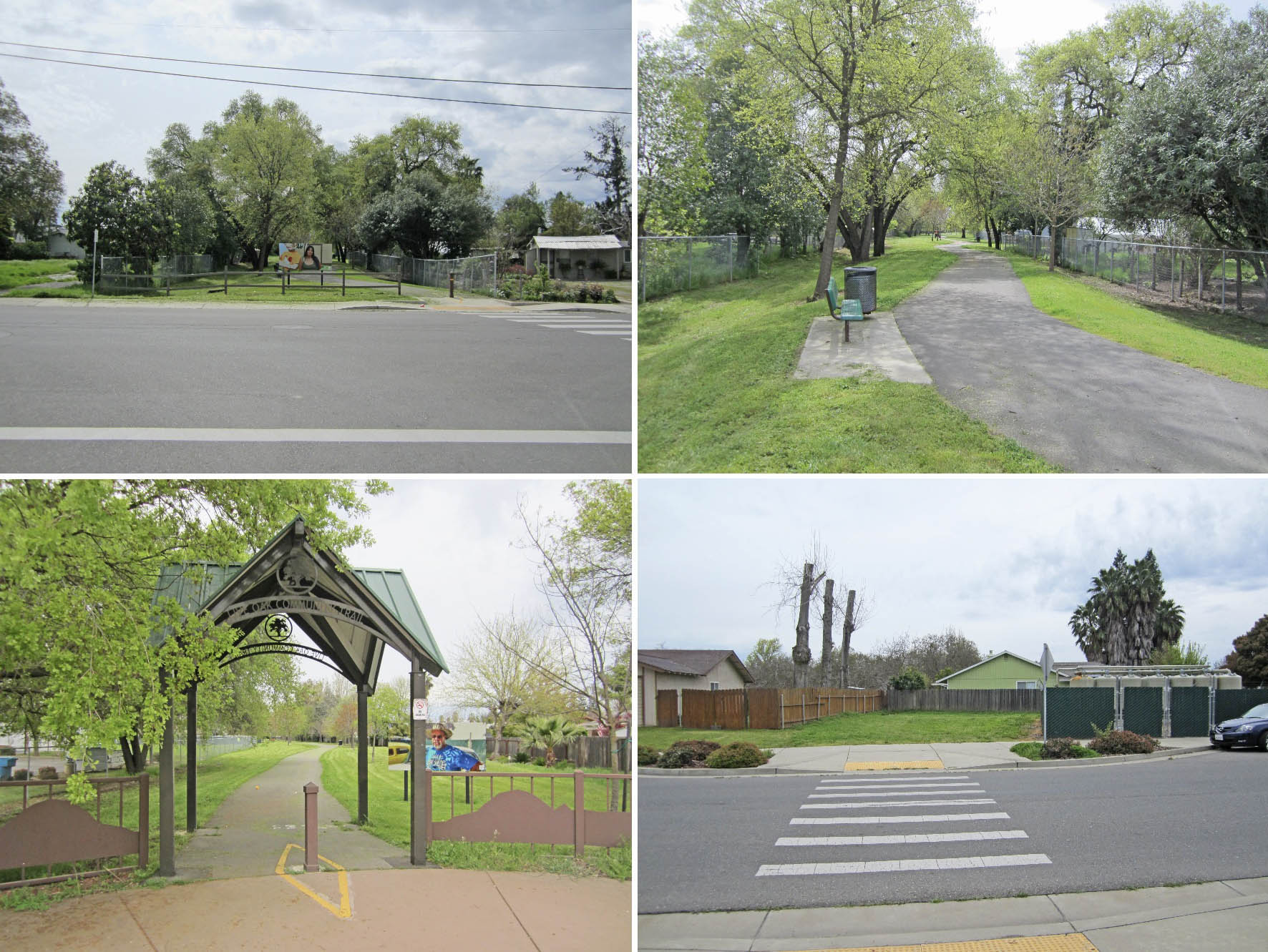 You can still enjoy a walk through the double-track section of Maceta between Elm St. and Apricot St. as the abandoned right-of-way was transformed to the Live Oak Community Trail. The entry from Elm St. is in the upper left, within the trail viewed to the south is seen in the upper right. he entry from the southern end at Apricot St. viewed to the north is shown in the bottom left, and the development built on the right-of-way across Apricot St. viewed to the south is seen in the bottom right.
