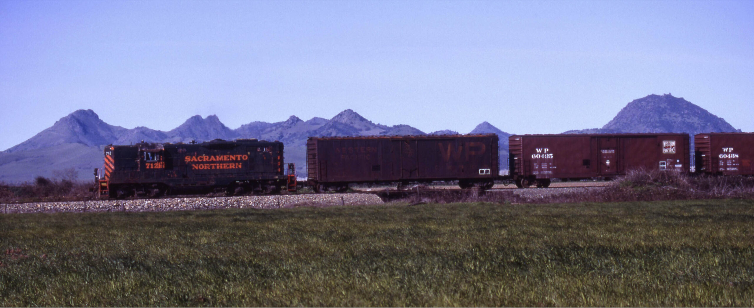 The hypothesis is that most images taken in areas unknown to Bay Area railfans were near station stops. Identifying all of the station stops and substations on the line would provide information about adjacent electric transmission and telephone poles and other physical markings in the intervals, particularly of surrounding buildings and hills. Applying this to the section between Colusa Jct. and Live Oak will follow. We head out there with a west view of the Sutter Buttes taken from Larkin Rd. in 2018 north of Paseo Rd. fairly close to Live Oak.