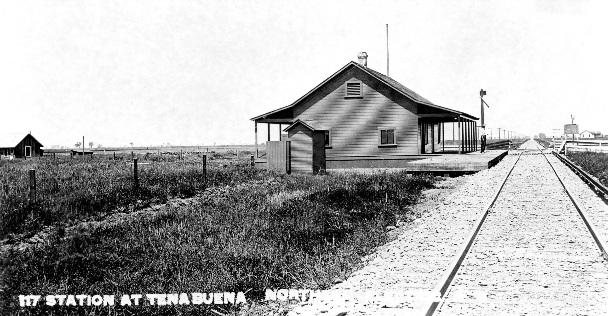 Our trip will not include a view from ca. 1940 of the station at Tierra Buena, so all we have is an north view taken by the NE some thirty years earlier. At that point of time there is no spur, and the electric lines typical of this part of Sutter County have not been erected.