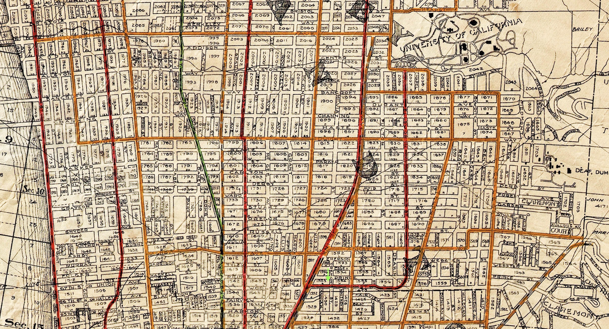 The Ellsworth line, green arrow in this map, however, was not part of a new real estate venture as it merely served as a way to go from the Oakland Pier to deep into the UC Berkeley campus. In those days the streets penetrated as far north as Allston Way before the construction oF Edwards Stadium as seen in this map from 1912, but the Ellsworth line was particularly entrapped in a sea of Oakland Traction streetcars and the Key Shattuck line. Given the few images existing documenting the Ellsworth Iine operation and abandonment, it is is covered in a separate update, click here.