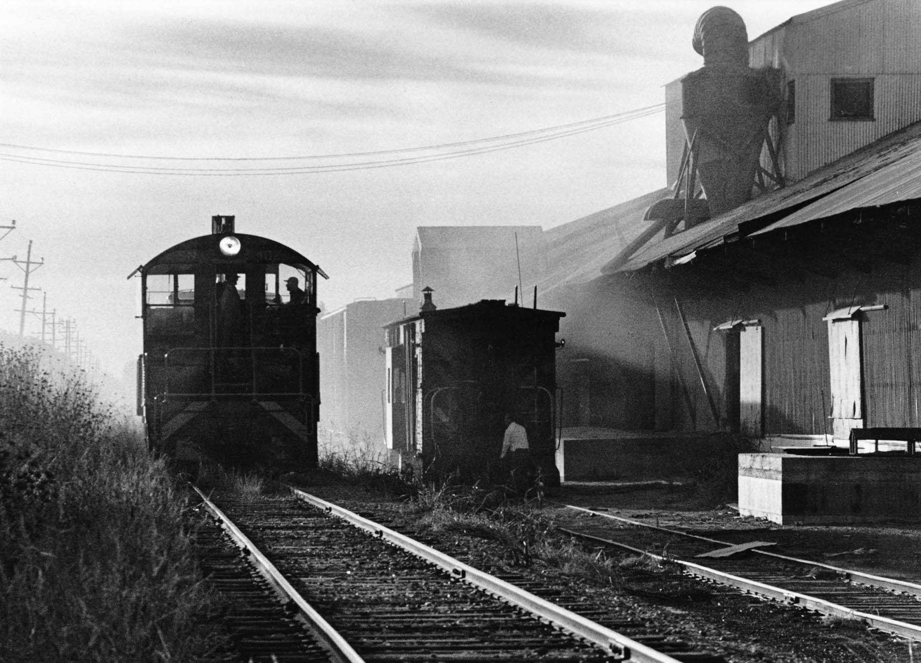 • Finally a documentation of switching at Tarke Warehouse on Oct. 10, 1973, the only picture found of this operation that had been ongoing since 1925. The image captures the dust in the air at the warehouse. Dick noted “that once at Tarke, they loaded bulk beans in covered hoppers and bagged beans in box cars.” Tarke Bean was purchased in 2013 Rhodes-Stockton Bean CO-OP, but is still listed in 2026 as Tarke Barn LLC.