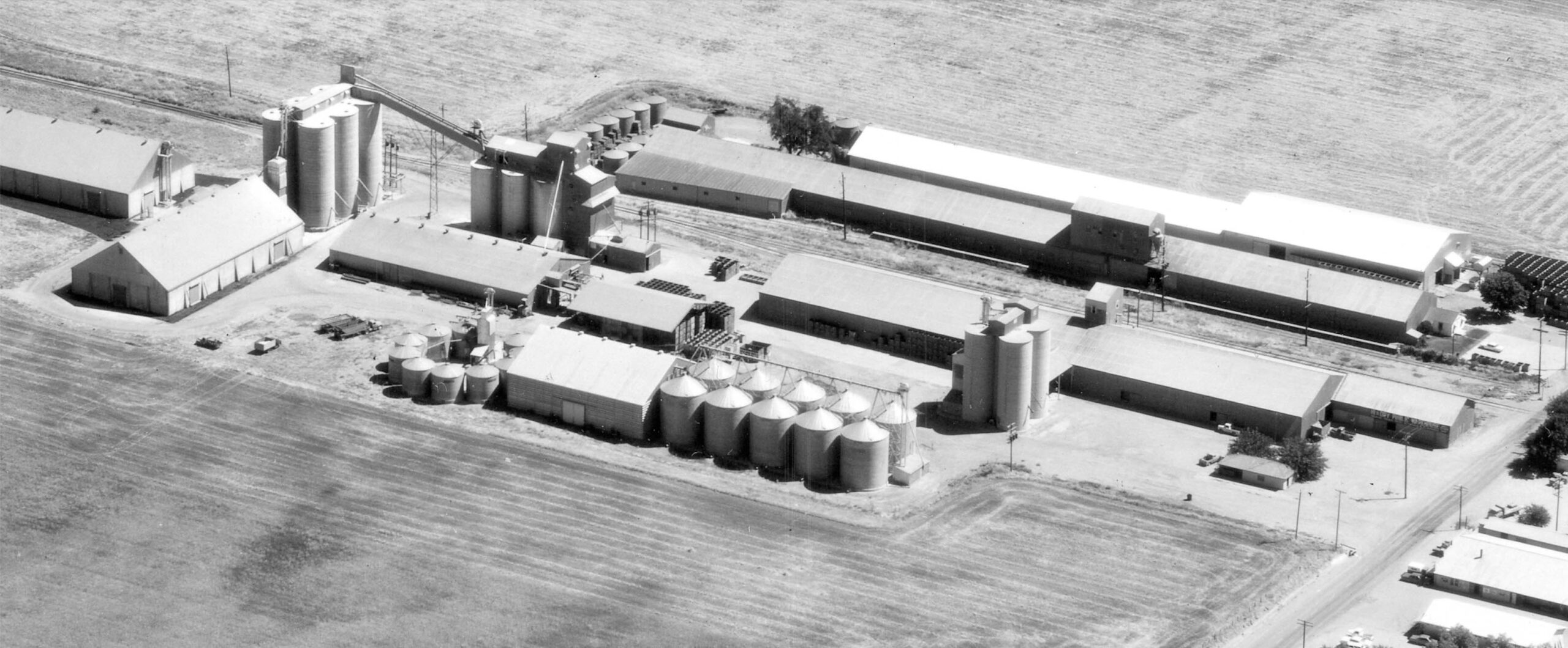• A detail of the portion east of Acacia Ave. from the 1967 aerial shows what was and is still Hi & Dry in 2026. It was begun in 1949, confirmed by its absence in images from 1940, and was purchased in 2012 by Farmers’ Rice Cooperative. Sutter Rice Co. is also at this location in 2026.