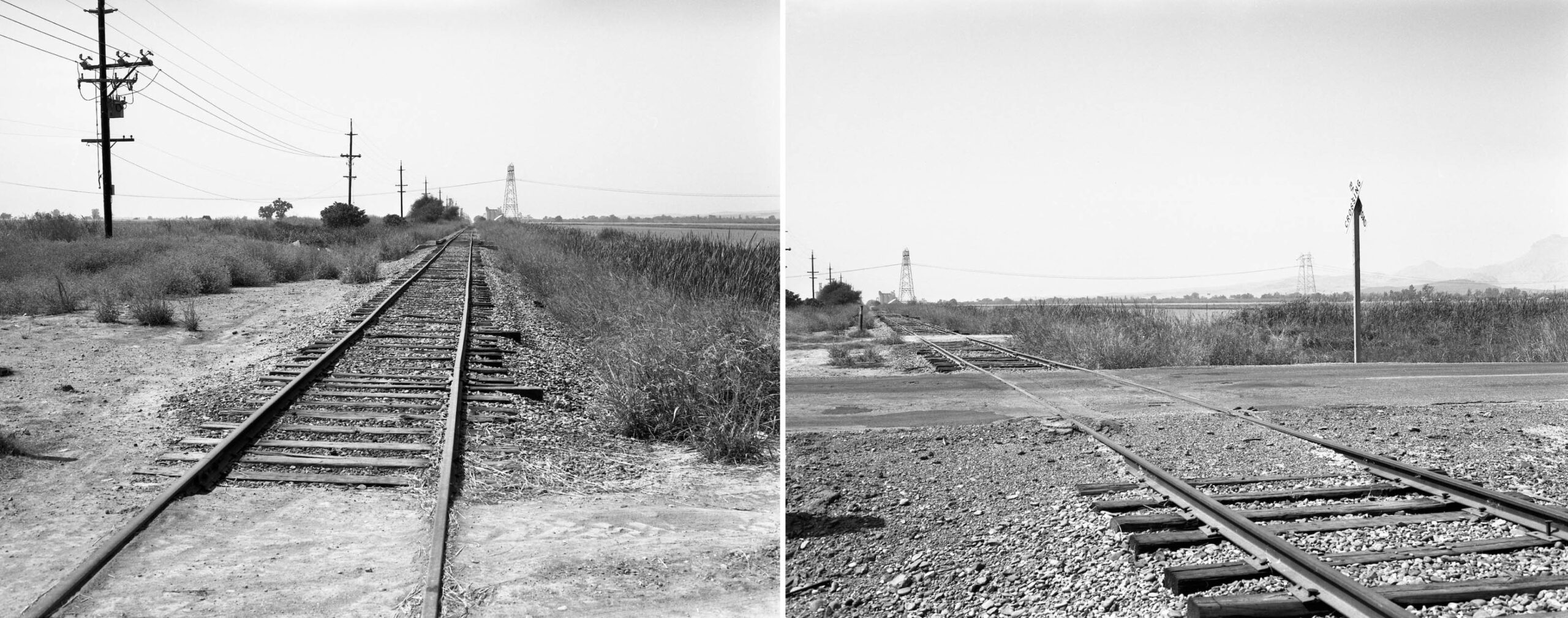 • Together, these two west views toward Sutter from Sept. 15, 1988 at the Humphrey Rd. grade crossing provide a panoramic view of the area. It is hard to imagine this spot as a former flagstop in the early 20th century in terms of passenger numbers.