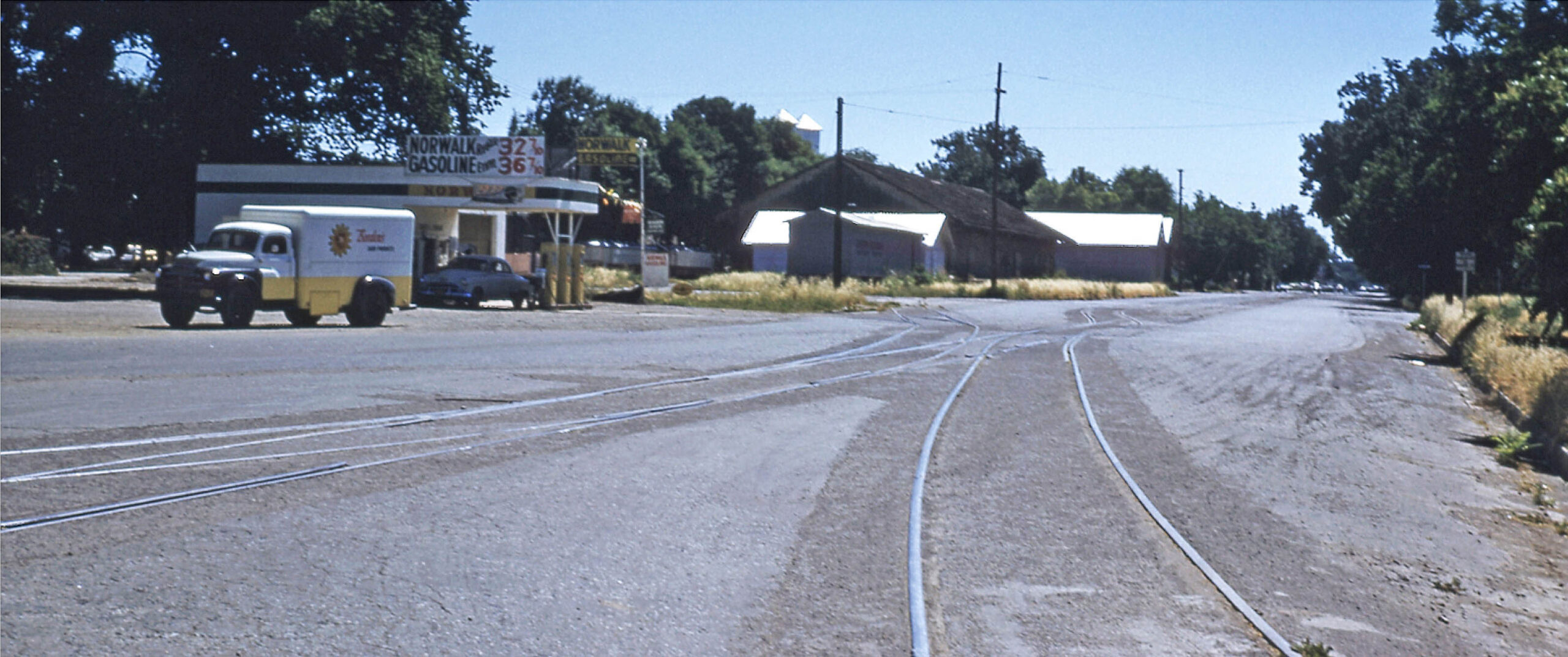Jack Shekell returned to Colusa on Mar. 11, 1972, possibly looking for any remains of the SN. Only one picture from that trip was found, this east view at the border of asphalt and agriculture, urban and rural. Acknowledgement and appreciation to Resa Lyn and Tania Cervantes for their search for addresses of SN customers, and to Resa for digging out the newspaper clipping about the SN abandonment. Next time, the Meridian Bridge and Schindler’s Legacy.