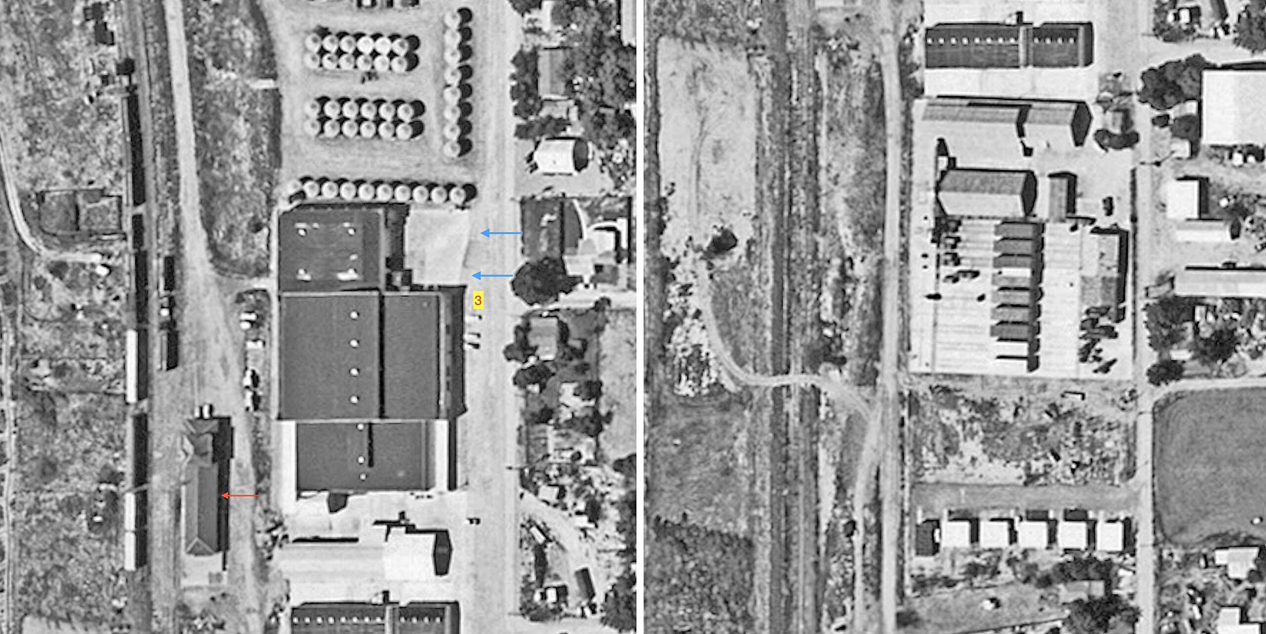 Once the SN abandoned and the talk of starting the NCERM ended, removal of any trace of the former SN operations was almost complete by 1965 as shown in the aerial below versus that from 1937. The green arrow points to one surviving landmark, the former SN warehouse, in place by 1921. Jeff Asay provides in his book a very concise summary and figure explaining the rail removal and salvage operation in Colusa that began in Oct. 1960.