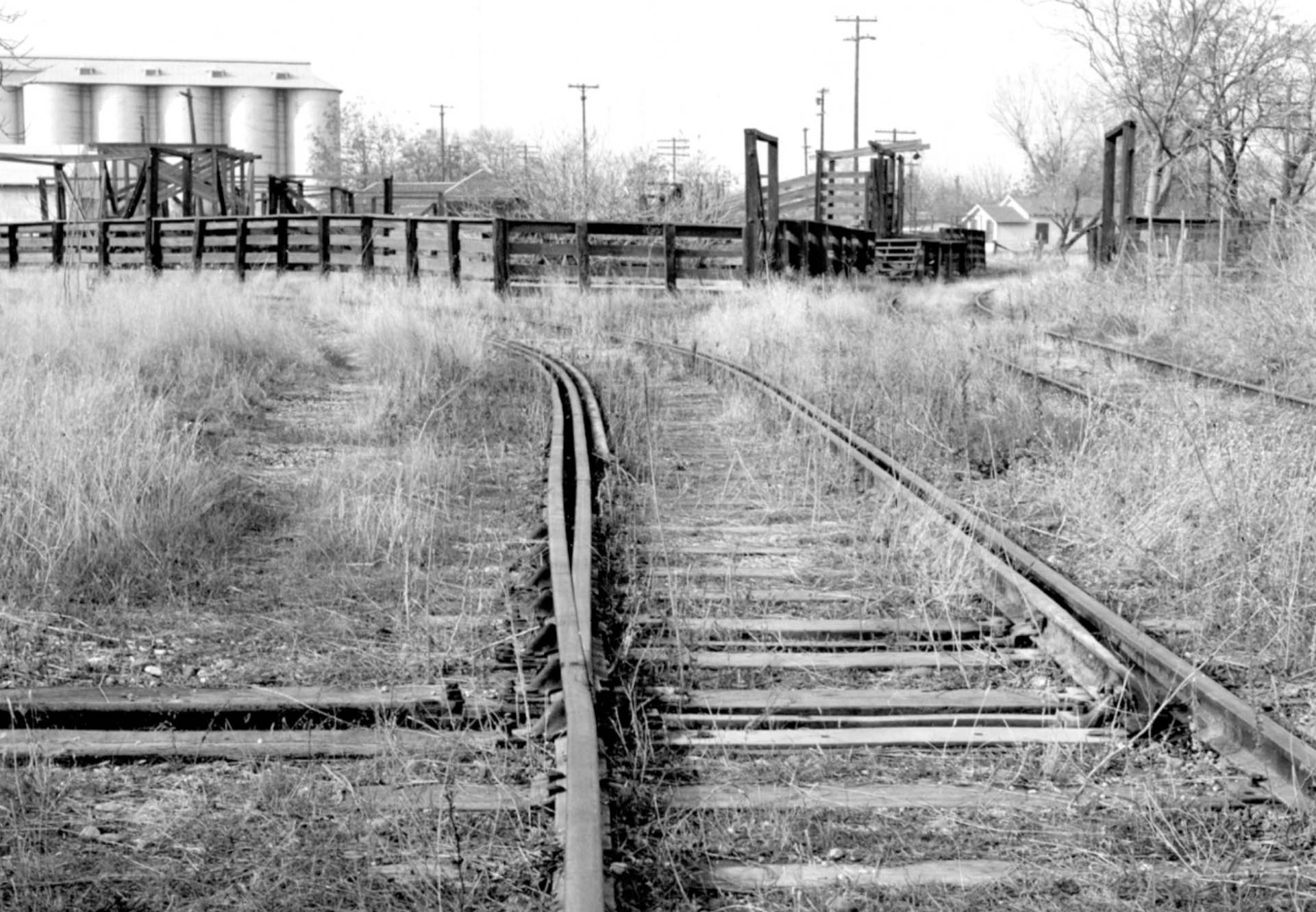 Now facing west in an undated view, someone documented the beginning of the gauntlet track arrangement of the loop, as well as the short spur and the adjacent livestock loading area. The large tanks to the west seen in the distance are absent in the 1937 aerial, but will be seen in a 1957 version shown later in this presentation. The unanswered question is whether this spur track also provided freights access to 14th St. For a treatise on gauntlet tracks, click here.